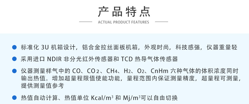 采用國際先進的NDIR非分光紅外技術和基于MEMS的TCD熱導技術,主要用于測量各種煤氣、生物燃氣中的CO、CO2、CH4、H2、O2、CnHm 等六種氣體體積濃度及熱值。武漢天禹智控研發的在線紅外煤氣熱值分析儀標準化3U機箱、測量精度高、結構簡單、維護方便,軟件功能強大,可拓展性強、現場實用性好,目前暢銷國內外,適用于裂解氣化、生物氣化等可燃氣體不同成分的體積濃度和熱值。