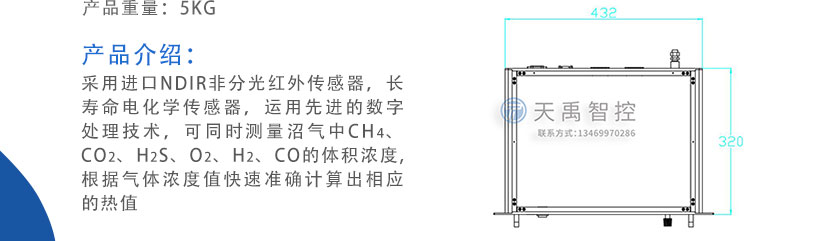 采用進口NDIR非分光紅外傳感器,長壽命電化學傳感器,運用先進的數字處理技術,可同時測量沼氣中CH4、CO2、H2S、O2、CO、H2的體積濃度,根據氣體濃度值快速準確計算出相應的熱值。