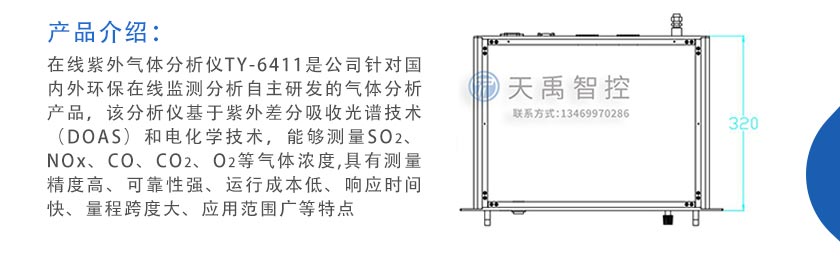 基于紫外差分吸收光譜技術(DOAS)和電化學技術,能夠測量SO2、NOx、CO、CO2、O2等氣體濃度。具有測量精度高、可靠性強、運行成本低、響應時間快、量程跨度大、應用范圍廣等特點,在線紫外氣體分析儀 TY-6411是公司針對國內外環保在線監測分析自主研發的氣體分析產品。