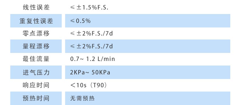 SO2、NO0~20~100mg/m3; O20~25%; CO0~625mg/m3;