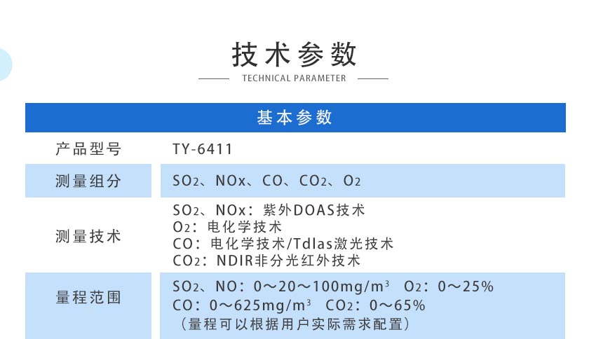 SO2、NOx紫外DOAS技術; O2電化學技術; CO: 電化學技術/Tdlas激光技術; CO2NDIR非分光紅外技術