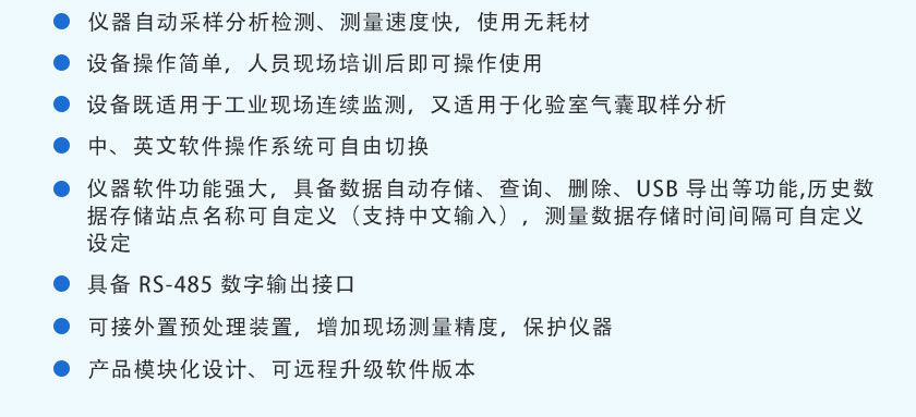 • 便攜紫外氣體分析儀 TY-6400P 該分析儀基于紫外差分吸收光譜技術(DOAS)和化學計量學算法(PLS),能夠測量SO2、NO、NO2、O2、NH3、CO、CO2、Cl2、O3、H2S、HCl、CH3I等氣體濃度,具有測量精度高、可靠性強、運行成本低、響應時間快、量程跨度大、應用范圍廣等特點。