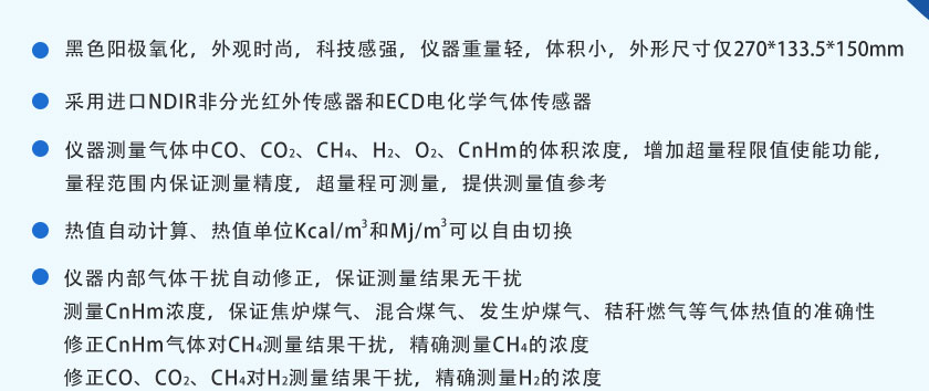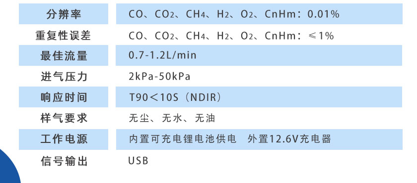 CO/CO2/H2/O2/CH4:0-100%;CnHm:0-10%; O2:0-25%