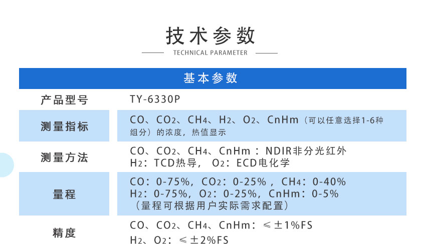 CO/CO2/CH4/CnHm:±2%FS; H2/O2: ±3%FS