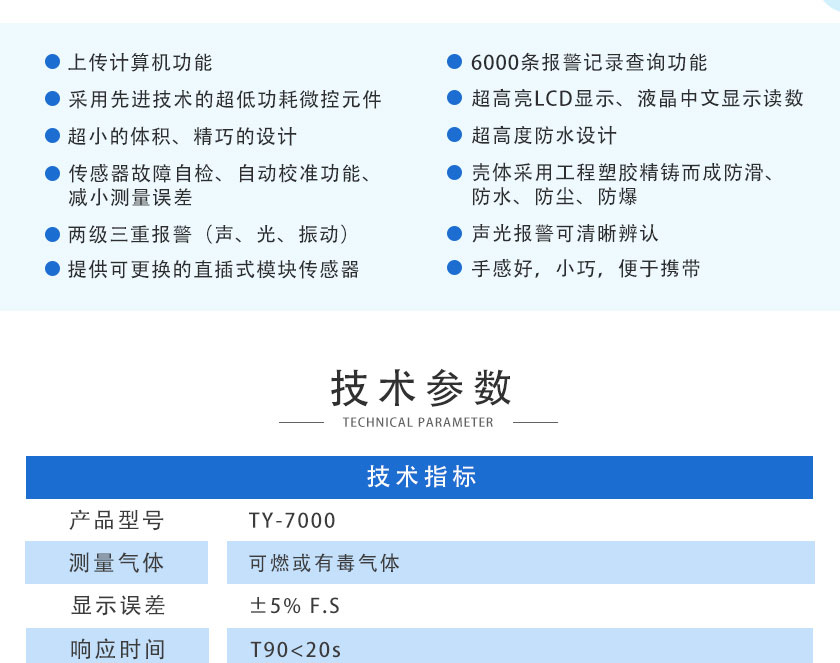 便攜式單組份氣體檢測儀 TY-7000