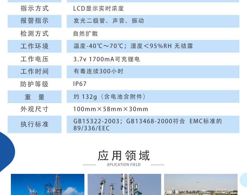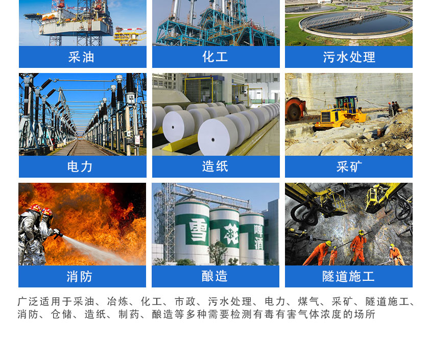 采用純進口傳感器,靈敏度高,穩定可靠。國內領先中文操作菜單,簡便、無需更換電池、防水防塵防爆、配合可更換直插式氣體傳感模塊、維護費用極低!便攜式單組份氣體檢測儀廣泛適用于采油、冶煉、化工、市政、污水處理、電力、煤氣、采礦、隧道施工、消防、倉儲、造紙、制藥、釀造等多種需要檢測有毒有害氣體濃度的場所。