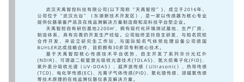 • 在線煤氣分析系統(tǒng) TY-8300 TY-8300型煤氣在線分析系統(tǒng)是天禹智控自主研發(fā)新型在線監(jiān)測系統(tǒng),該產(chǎn)品基于非分光紅外(NDIR)氣體分析技術(shù)、長壽命電化學(xué)傳感技術(shù)以及基于MEMS的熱導(dǎo)技術(shù),可同時(shí)在線測量煤氣的熱值,以及CO、CO2、CH4、H2、O2、CnHm等氣體的體積濃度。預(yù)處理系統(tǒng)采用冷干法設(shè)計(jì),關(guān)鍵部件采用原裝進(jìn)口,可根據(jù)現(xiàn)場不同的工況條件,為客戶定制解決方案,保證分析系統(tǒng)的可靠運(yùn)行。