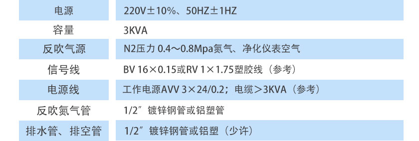 N2壓力 0.4~0.8Mpa氮氣、凈化儀表空氣