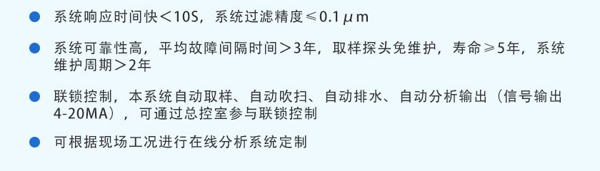 TY-8300型煤氣在線分析系統(tǒng)是天禹智控自主研發(fā)新型在線監(jiān)測系統(tǒng),該產(chǎn)品基于非分光紅外(NDIR)氣體分析技術(shù)、長壽命電化學(xué)傳感技術(shù)以及基于MEMS的熱導(dǎo)技術(shù),可同時在線測量煤氣的熱值,以及CO、CO2、CH4、H2、O2、CnHm等氣體的體積濃度。預(yù)處理系統(tǒng)采用冷干法設(shè)計(jì),關(guān)鍵部件采用原裝進(jìn)口,可根據(jù)現(xiàn)場不同的工況條件,為客戶定制解決方案,保證分析系統(tǒng)的可靠運(yùn)行。