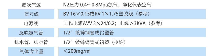 N2壓力 0.4~0.8Mpa氮氣、凈化儀表空氣 |