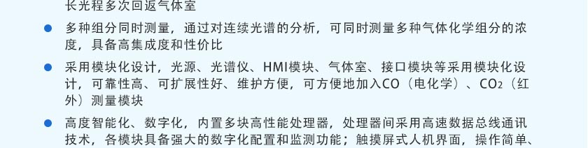 針對國內(nèi)外環(huán)保在線監(jiān)測分析自主研發(fā)的氣體分析產(chǎn)品,該分析儀基于紫外差分吸收光譜技術(shù)(DOAS)、NDIR非分光紅外技術(shù)和電化學(xué)技術(shù),能夠測量HC、SO2、NO、NO2、CO、CO2、O2等氣體濃度。