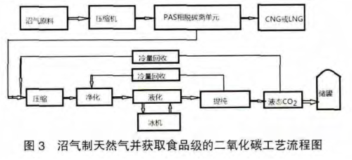 2 用沼氣制天然氣并獲取食品級的二氧化碳工藝