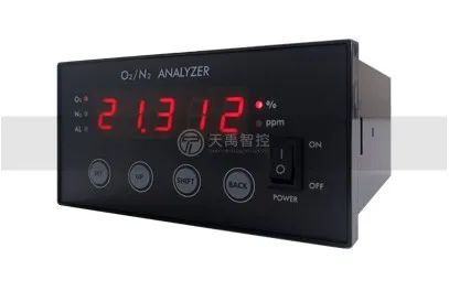 天禹智控的O2/N2分析儀,采用基于氧化鋯(Zirconia)技術的傳感器,它們能在ppm等級實現出色的精度,具備快速反應時間和長壽命、無損耗等優勢。采用RS485通訊,允許執行遠程校準和獲取測量數據。經過高性能32單位片機對信號進行處理換算,直接計算出氮氧混合氣體中的氧氣濃度值,經由數碼管顯示氧氣濃度值或經推算出的氮氣濃度值。