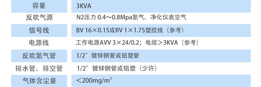 N2壓力 0.4~0.8Mpa氮氣、凈化儀表空氣